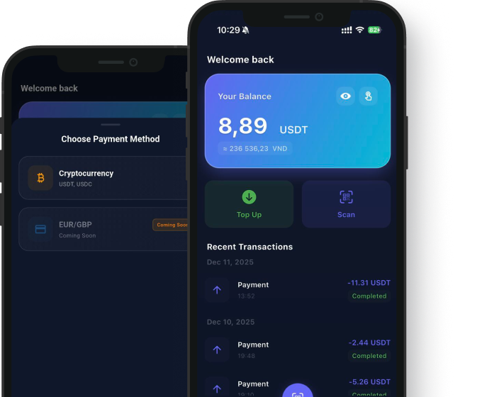 Add USDT to your balance in seconds. More networks soon.